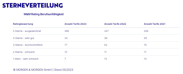 | Ratingbewertung | Anzahl Tarife 2023 | Anzahl Tarife 2022 | Anzahl Tarife 2021 |
