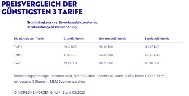 | Die günstigsten Tarife | Grundfähigkeit | Erwerbsunfähigkeit | Berufsunfähigkeit |