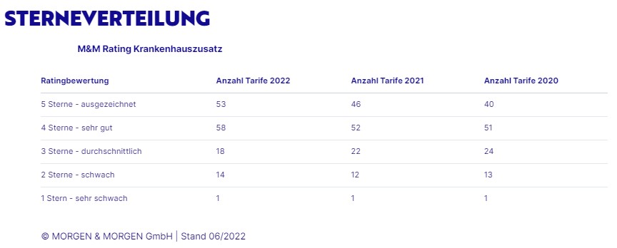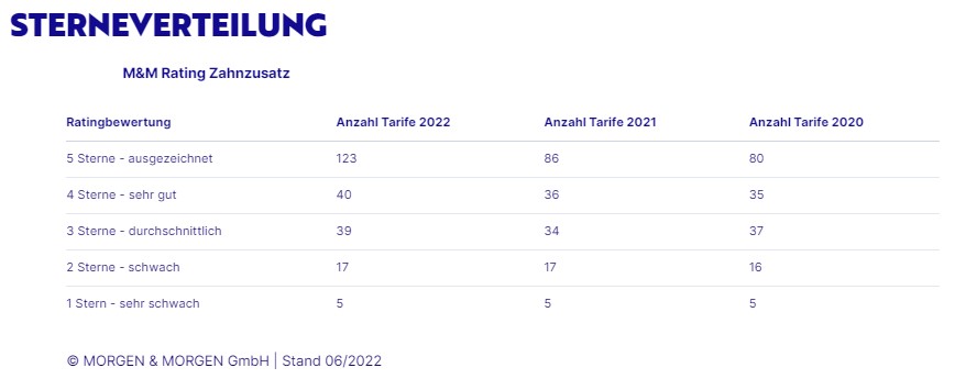 | Ratingbewertung | Anzahl Tarife 2022 | Anzahl Tarife 2021 | Anzahl Tarife 2020 |
