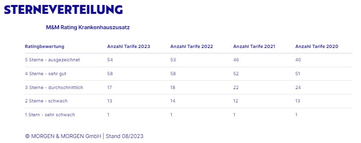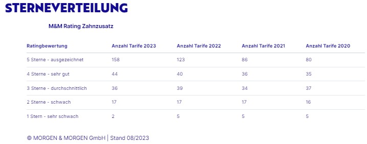 | Ratingbewertung | Anzahl Tarife 2023 | Anzahl Tarife 2022 | Anzahl Tarife 2021 | Anzahl Tarife 2020 |